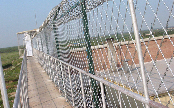 監獄護欄網又稱作“Y型安全防御護網”,是由V型支架立柱,加強型焊接片網,安全防盜連接件和熱鍍鋅刀片刺籠組成強度和安全防御性級別很高。近年來,被廣泛應用在機場監獄,軍事基地等高安全場所。(注:如果在監獄護欄網頂部加裝刀片刺絲、刀片刺繩后又很好的增強了安全防護性能)。
