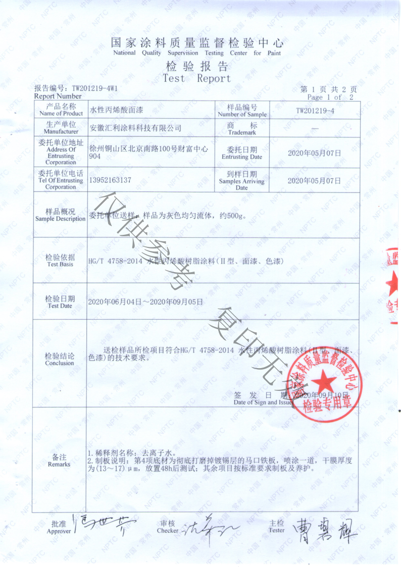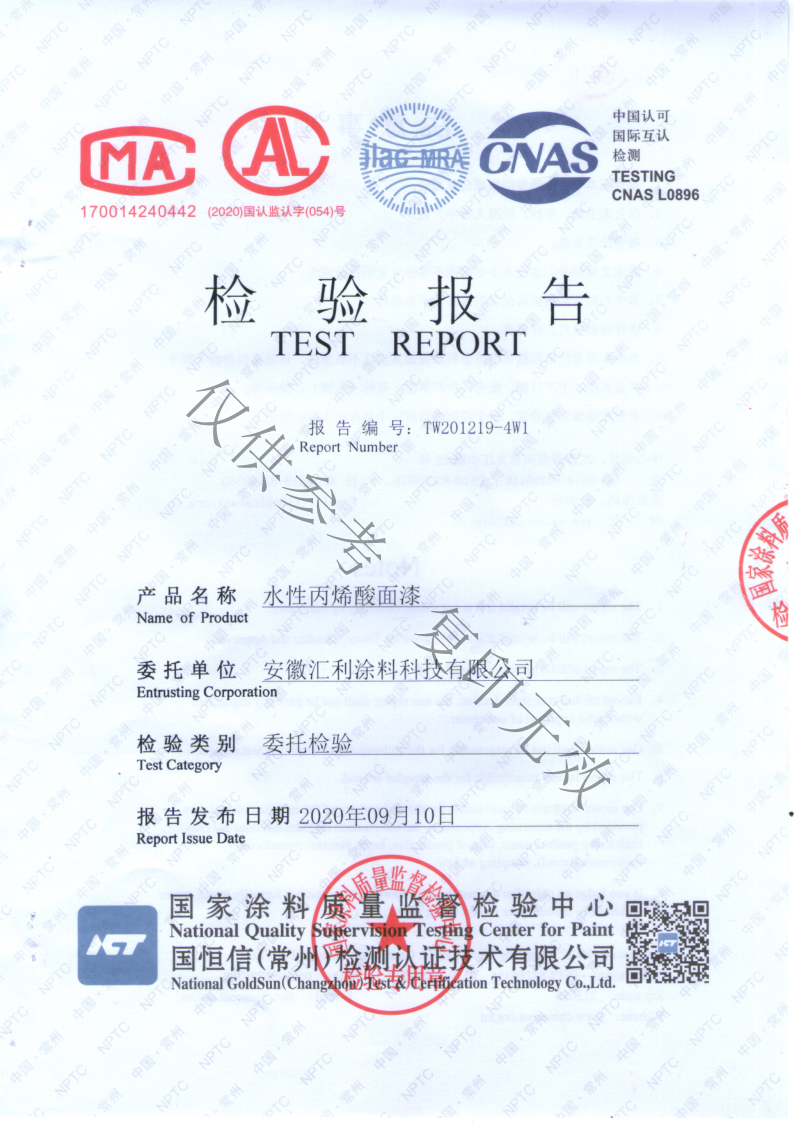 水性漆第三方權威檢驗報告新鮮出爐!!!